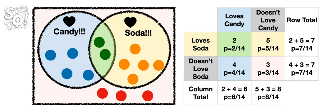 We can use conditional probabilities to answer questions like “What is the probability of someone not loving candy if they love soda?”